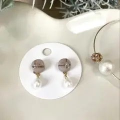 365 ベージュ マーブル ゴールドプレート ピアス イヤリング ハンドメイド