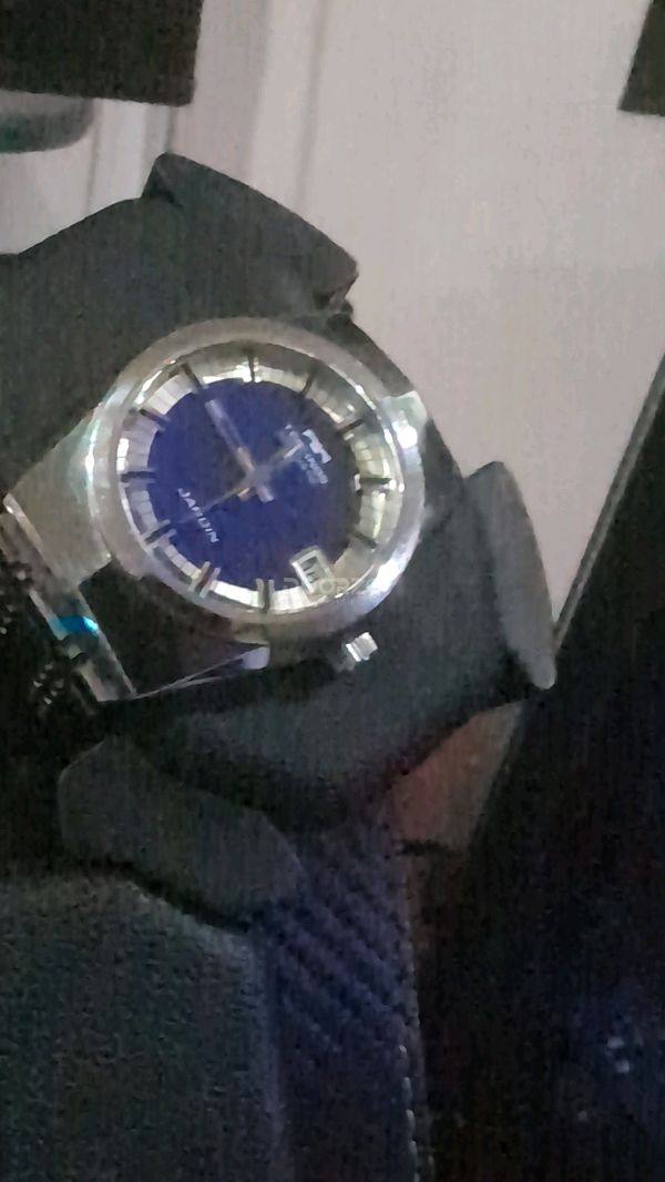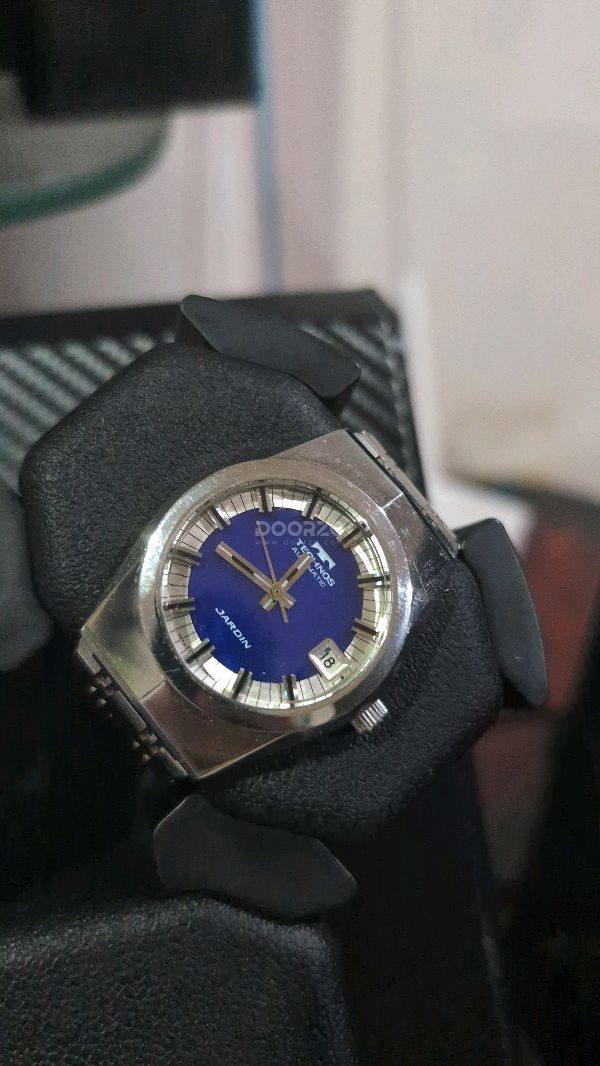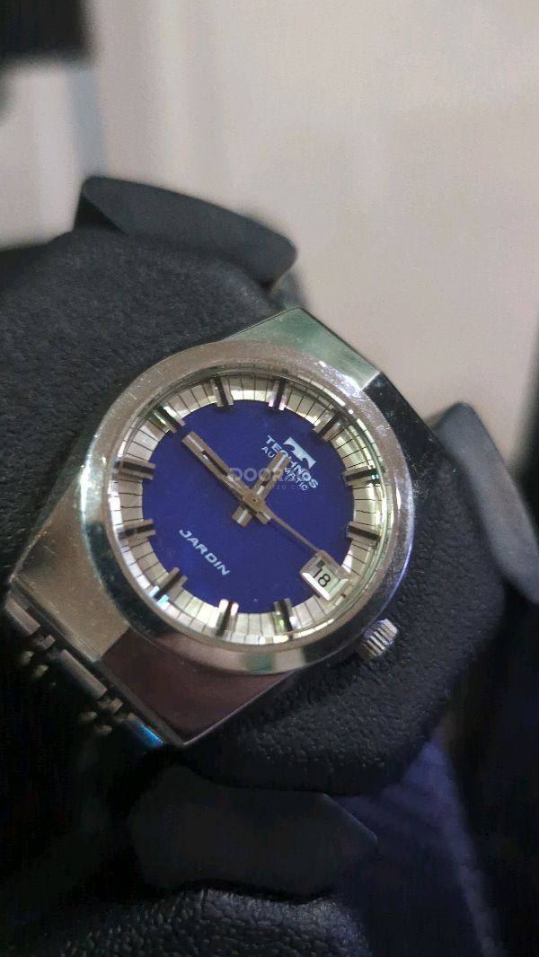 This Technos Automatic watch, with its striking blue dial and silver-toned case, offers a vintage charm thats both elegant and distinctive. The crisp hour markers and date window at 3 clock ensure good readability. It s a classic piece that would appeal to collectors and those appreciating timeless design.