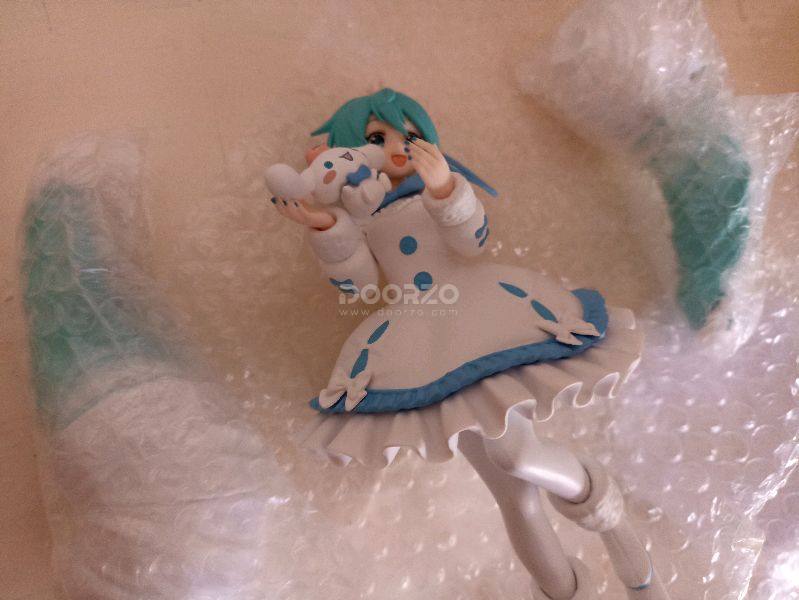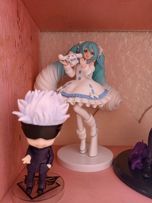 Las dos figuras venían envueltas en papel de burbujas y papel kraft Ambas son muy bonitas y con detalles que las hacen especiales. Me encanta que la base de la figura de Gojo tenga nubes y sea transparente y que la figura de Miku tenga un mini Cinnamoroll