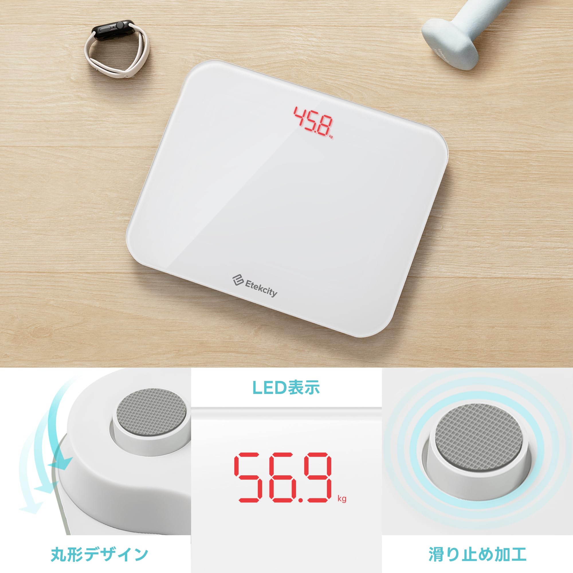 | 特徴: | 大型ディスプレイ, 滑り止めプラットフォーム, 自動電源オン・オフ |