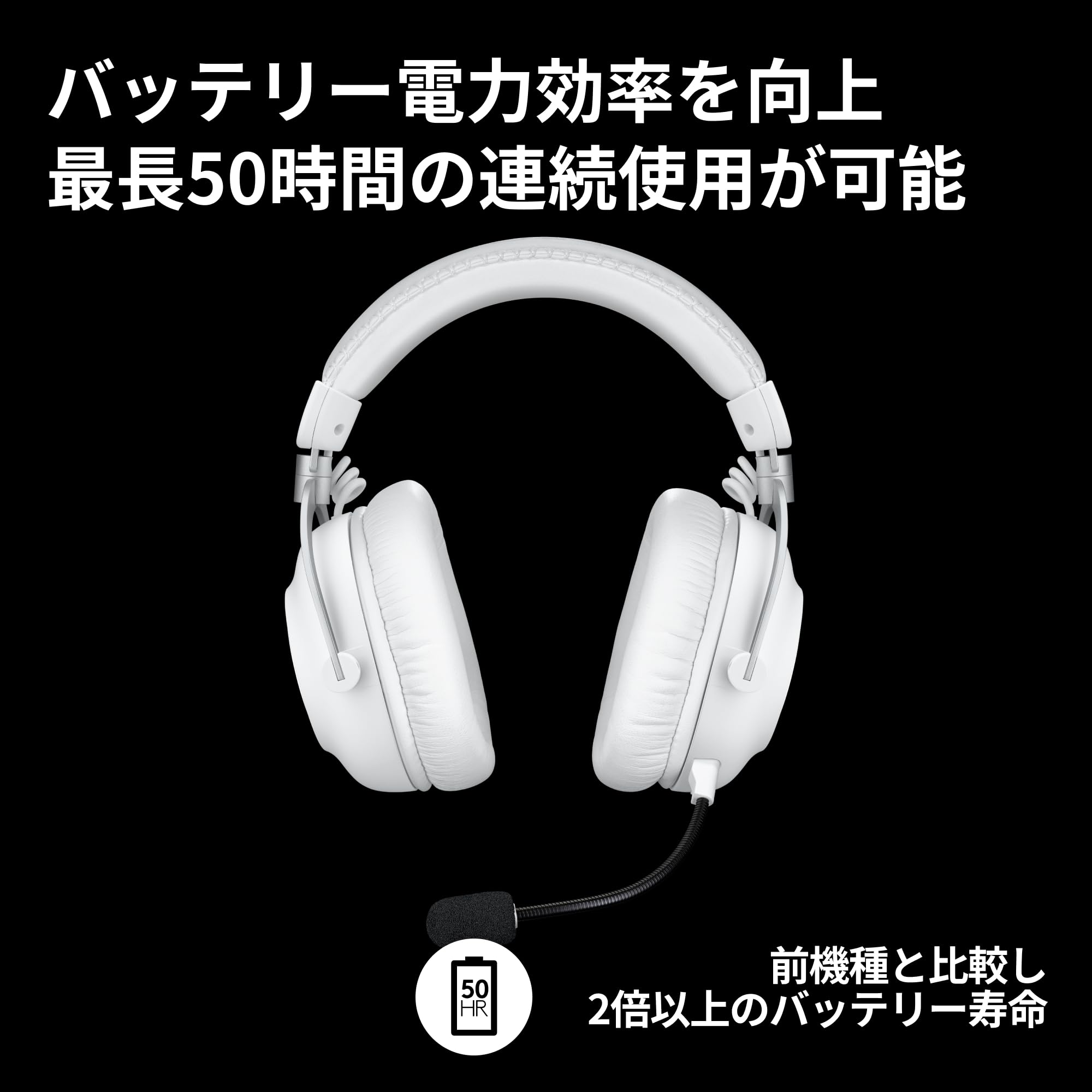 | 付属コンポーネント: | 製品本体、マイク、低反発合成皮革製イヤーパッド、交換用低反発クロス イヤーパッド、USB-A LIGHTSPEEDワイヤレスレシーバー(3.5mmポート搭載)、着脱式マイク(フォームウインドスクリーン付き)、 USB-A-USB-C ケーブル、3.5mmケーブル、キャリングケース、保証書、保証規定 |