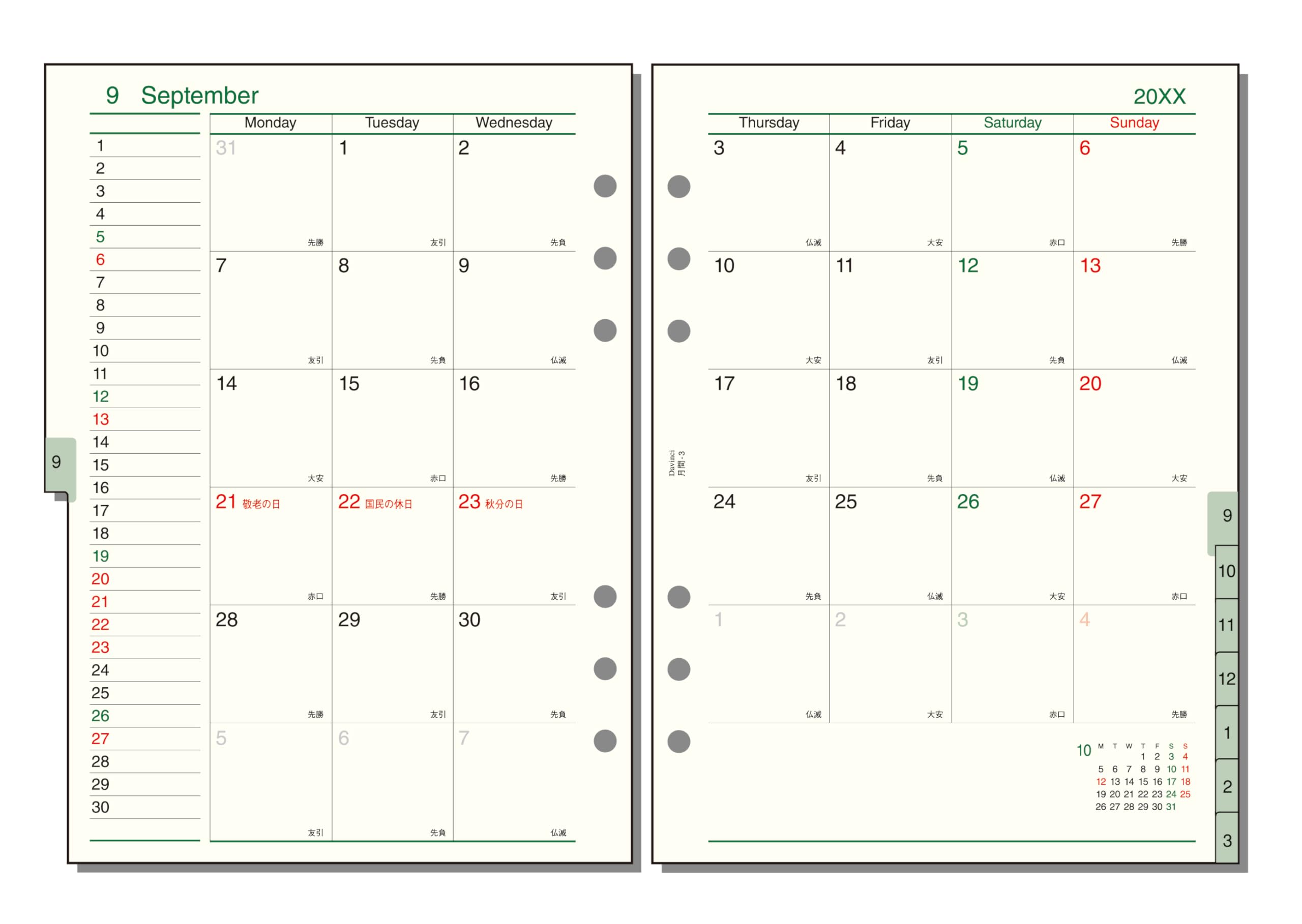 | カラー: | 月間3(ブロック式インデックス付き) |