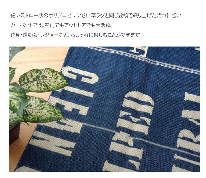 ラグ 万能カーペット 約174×174cm 日本製 アトピー協会推奨品 タイポグラフィ 洗えるポリプロピレンラグ トリド