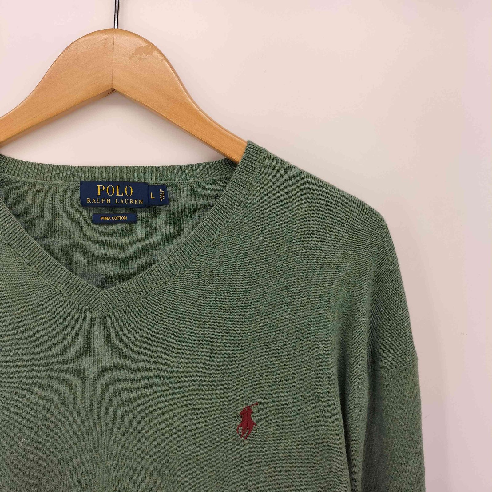 ポロラルフローレン POLO RALPH LAUREN PIMA COTTON ポニー刺繍 Vネック ハイゲージ コットン ニット メンズ import:L