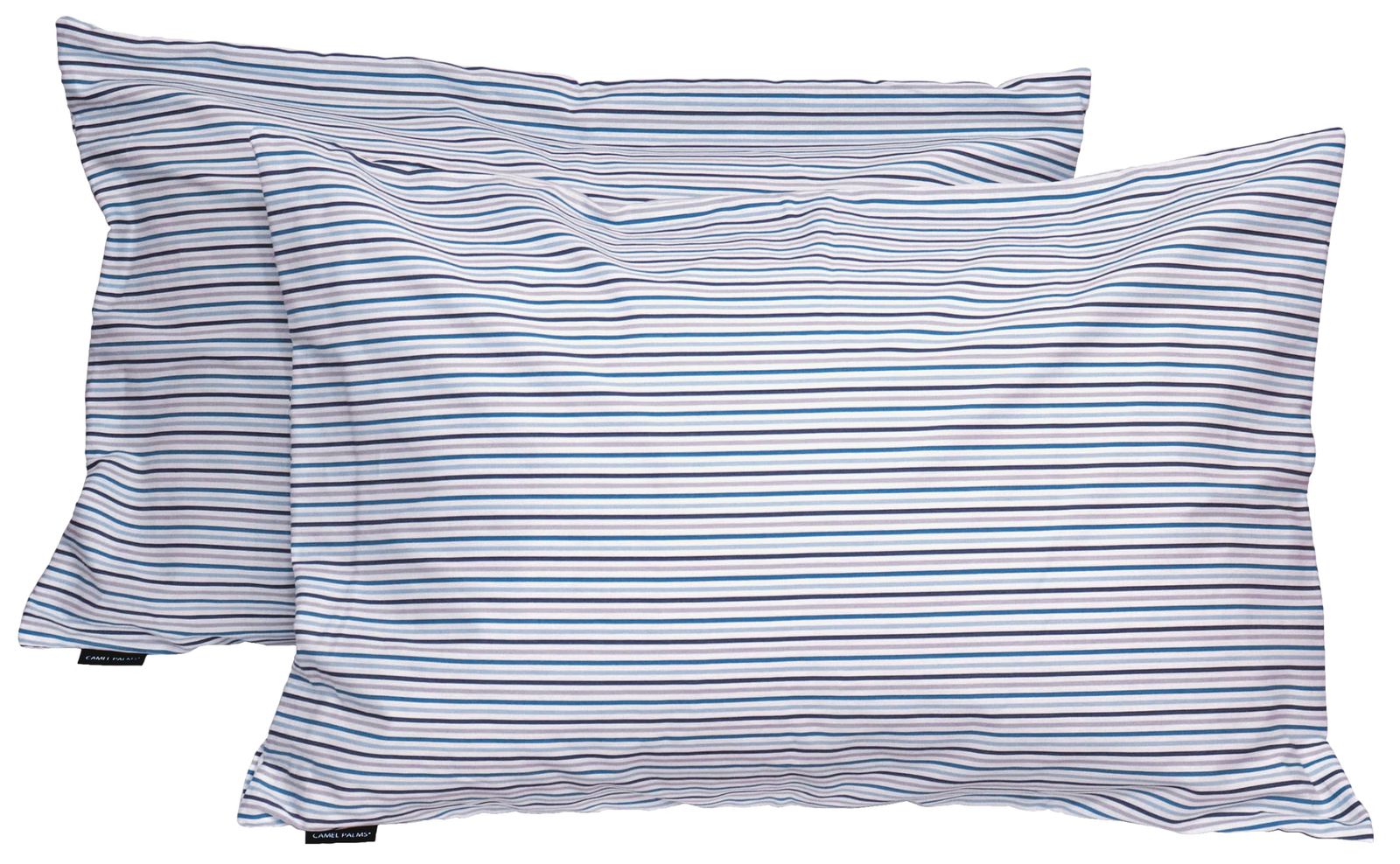 43×63cm ファスナー式 ボーダー柄 ピローケース まくらカバー ブルー 綿100% 日本製 【同色2枚組】 PALMS CAMEL