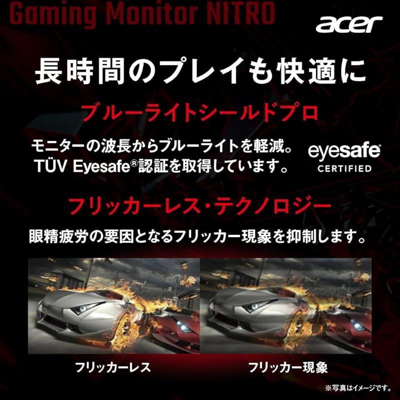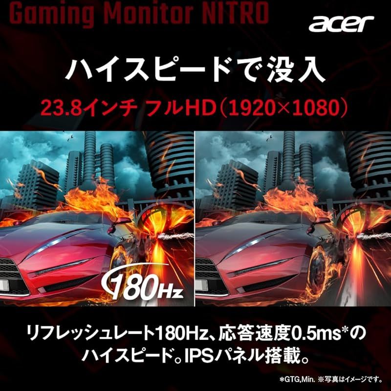 日本エイサー Acer Nitro ゲーミングモニター 23.8インチ IPS 非光沢 フルHD 180Hz 0.5ms HDMI 2.0 DisplayPort AMD FreeSync Premium HDR 10 VESAマウント対応 スピーカー内蔵 ヘ