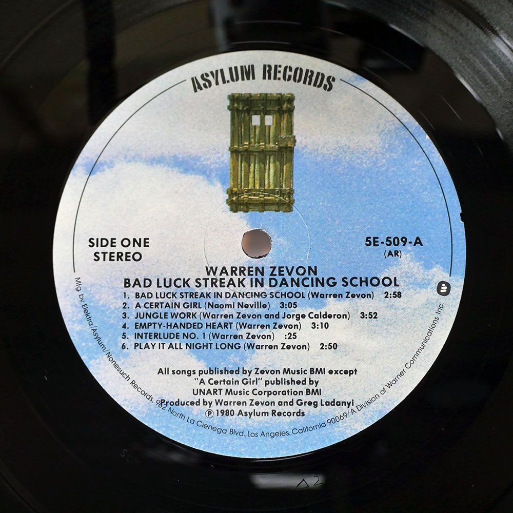 米 US盤 WARREN ZEVON/BAD LUCK STREAK IN DANCING SCHOOL/ASYLUM 5E509 LP