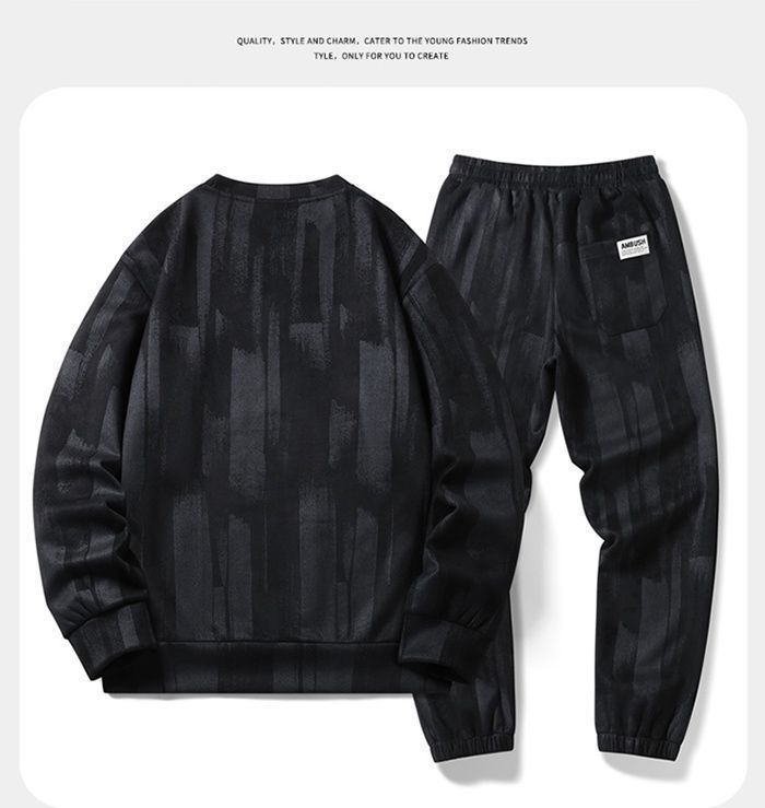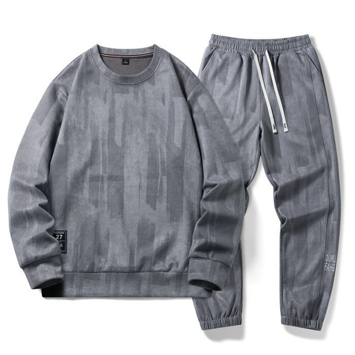 上下セットスエード調ルームウェアトップススウェット長袖カットソーラウンドネックセットアップロングパンツトレーナーメンズ