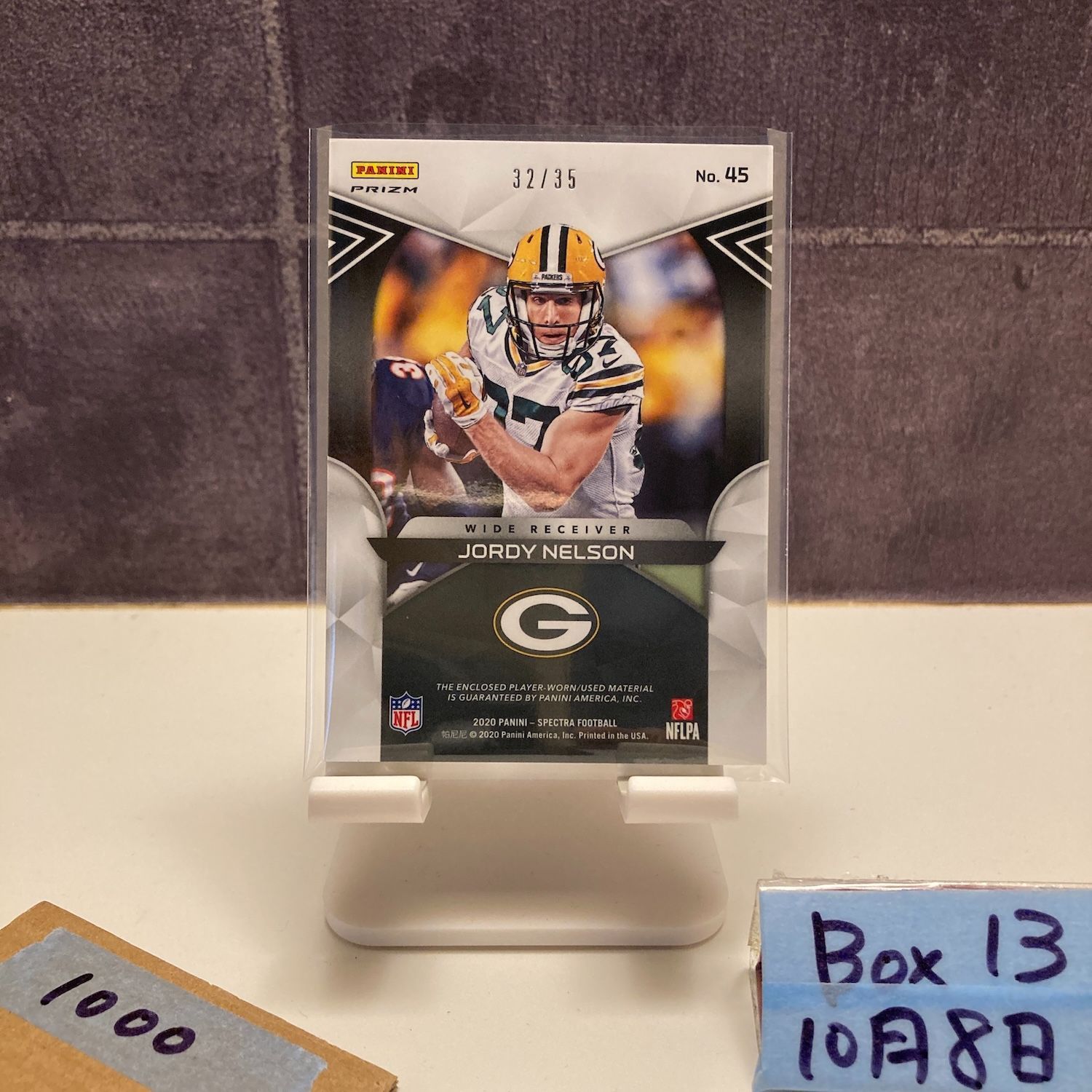 2020 Panini Spectra Jordy Nelson 32/35 Green Bay Packers Max Impact Relic ジャージ Speckle Prizm カード