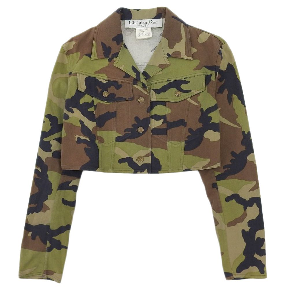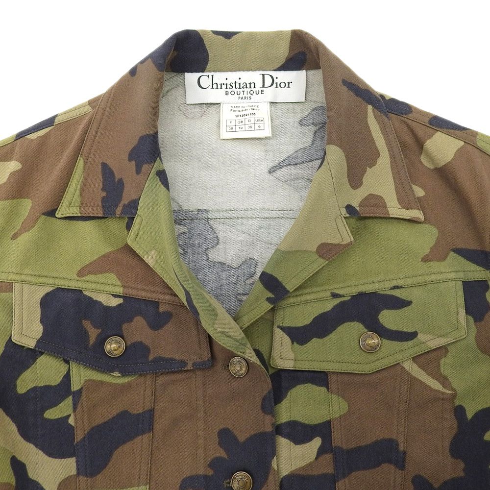 美品 Christian Dior クリスチャンディオール ガリアーノ期 カモフラ柄 ショート丈ジャケット 38 カーキ レディース 古着 中古 USED