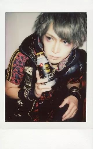 【中古】生写真(男性) Purple Stone/keiya/上半身・衣装黒・赤・金・体右向き・座り・右手コーヒー缶・左手下/生チェキ