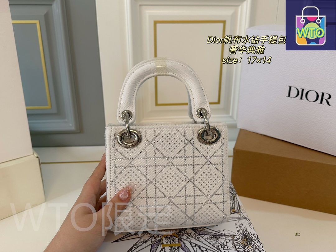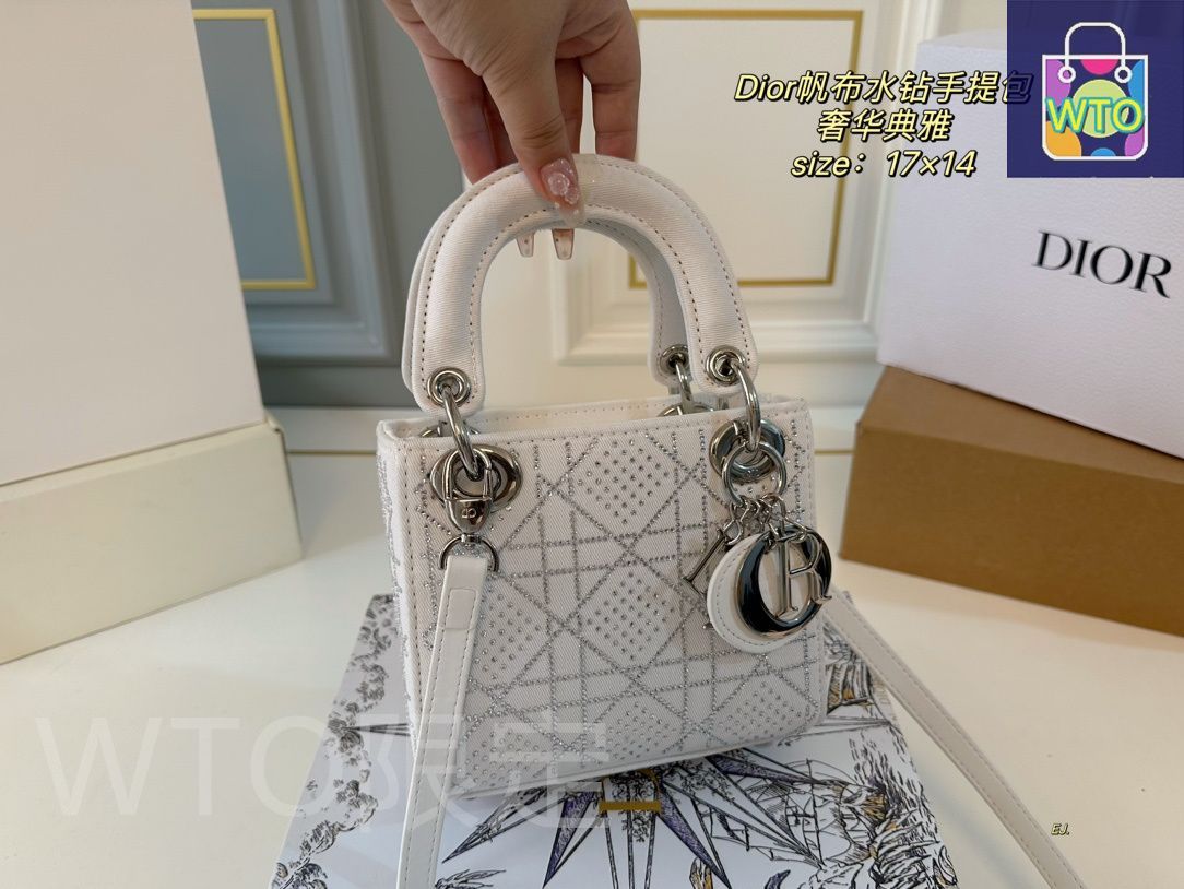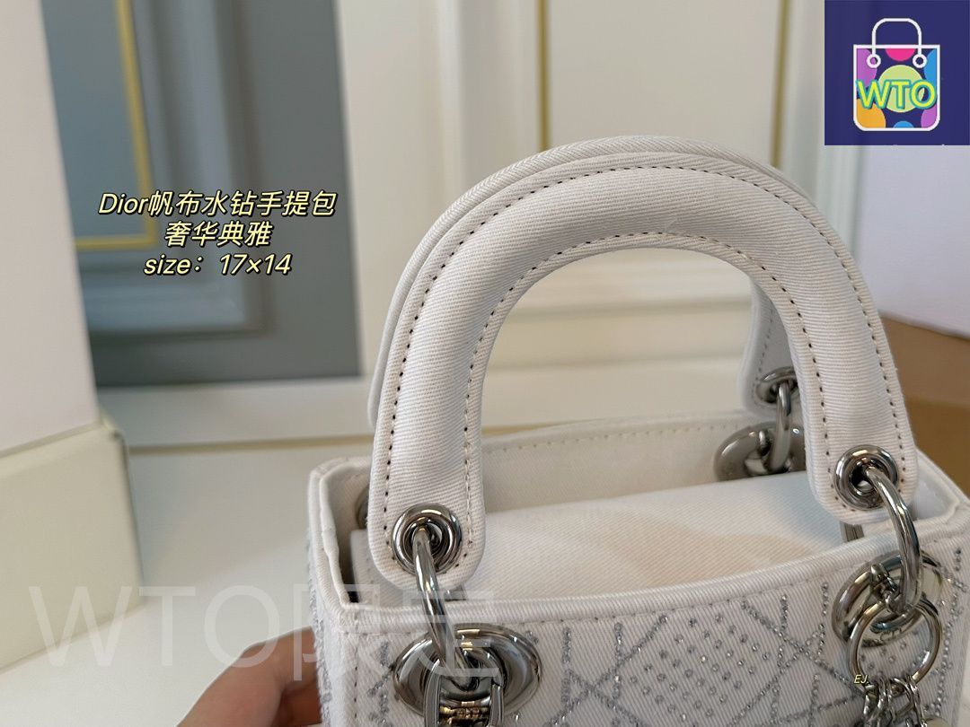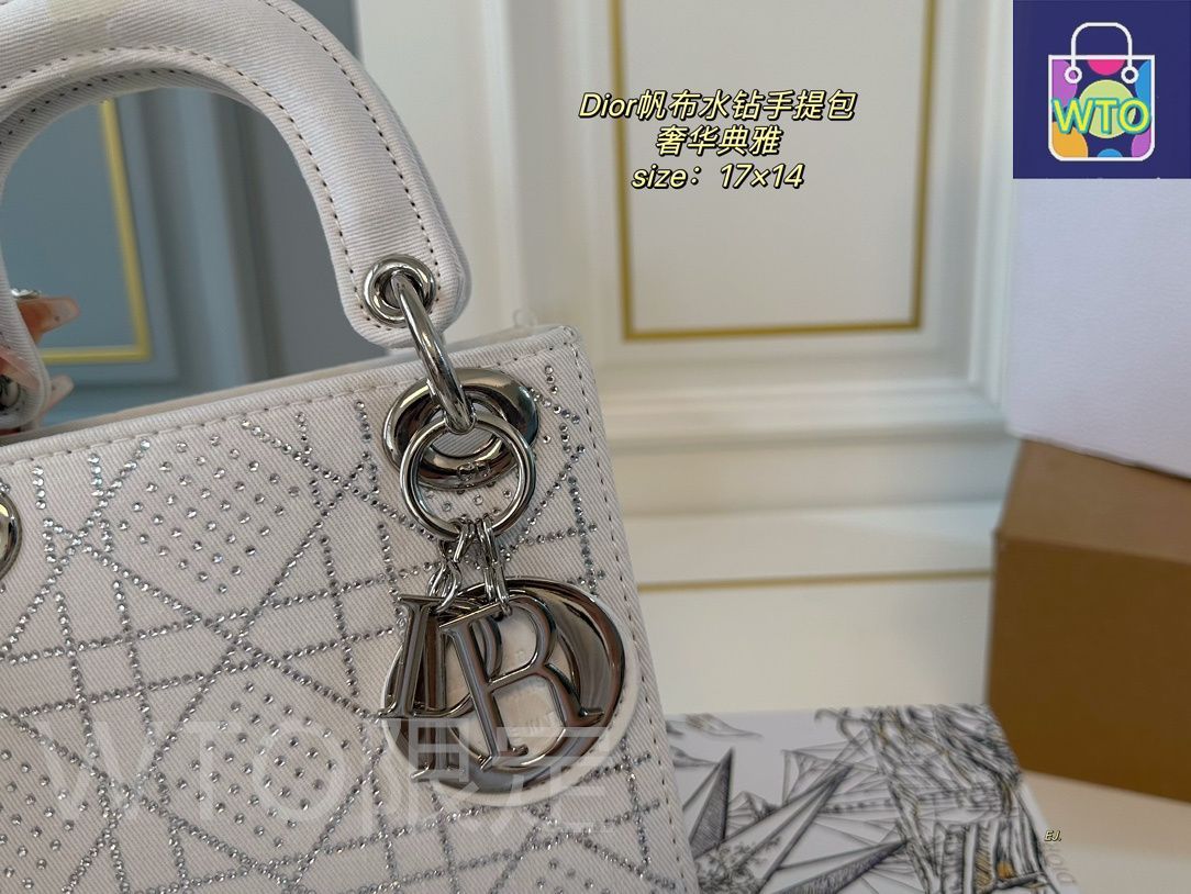 【今日WTO】DIOR Lady Dior キャンバスとスパークルストーンのハンドバッグ!送料無料で今の在庫はお得な価格です!WT1輸入-DRO75