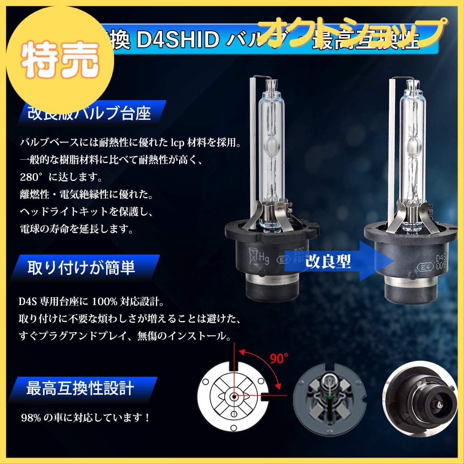 この度はオクトショップをご覧いただきありがとうございます。 送料は全国一律無料です。 以下商品説明となります。 ------------------------------------ Briteye D4S HIDバルブ 純正交換用 車用ヘッドライト HID D4S 6500K 車検対応 35W 12V HIDライト【2021アップグレード版】(2個入) サイズ:D4S_色:6500K 【車検対応・純正交換用D4S HIDバルブ】D4S専用台座に100%対応設計。プラグアンドプレイで簡単にインストールできます。バルブはプロジェクタータイプに合わせて最適な光を実現します。純正バルブと同じ発光点です。 明るくシャープたカットオフラインを形成し、対向車における眩しさにも配慮した設計です。純正品をベースに色温度を改善しました。愛車のヘッドライトの明るさと高級感を高めるには最適です! 【視認性抜群・安定した光軸】 アメリカAPL錠剤を採用し、発光を安定し、光の衰えを減らす。高純度キセノンは明るい6500Kの純白光を発生する。純正のHID電球比べて視認性が大幅に向上し、障害物や道路標識をより迅速に識別できるようになった。瞬間的に起動する時は、光量と安定性に優れている。純正バルブの明るさに不満のある方に、大いにお勧めします! 【改良版・長寿命】 D4Sバルブ台座部ベースには耐高電圧・耐熱性に優れたlcp材料を採用。 一般的な樹脂材料に比べて耐熱性が高く、280°に達します。 グレードアップした素材で、台座は耐久性が高く、燃え切れにくい。 燃性と電気絶縁性が普通より優れています。 ヘッドライトキットを保護し、電球の寿命を延長します。 信頼できる品質!あなたの頼れる選択です! 【高性能を兼ね備えた実力派HID】 アンチUVの石英ガラスを採用し、紫外線による劣化や曇りを防止し。極端な温度変化や振動に耐え!圧倒的な明るさと高いケルビンの輝き。2600ルーメンを実現し、夜道を明るくし、より効果的に電力消費量を低減します。効率的な省エネ・環境保護を実現します!高品質の素材で品質をし、リーズナブルな価格で販売する! 【Briteye正規品・高品質】2年の期間。あなたの頼れる選択です!各ランプは出荷前に厳しい検査を受けています。安心してお買い求めください。(ヘッドライトバルブ HID D4S 35W 6500K/純正hid用/12V車用 )国産車・輸入車対応。ご購入する前には、色温、型式、サイズを必ずご確認下さい。車種によっては装着できかねる場合がございます。何か質問があれば、いつでも私たちに連絡してください。 ブランド Briteye 光源タイプ 高輝度放電 ワット数 35 W フィットタイプ 車種専用フィット 電圧 12 ボルト