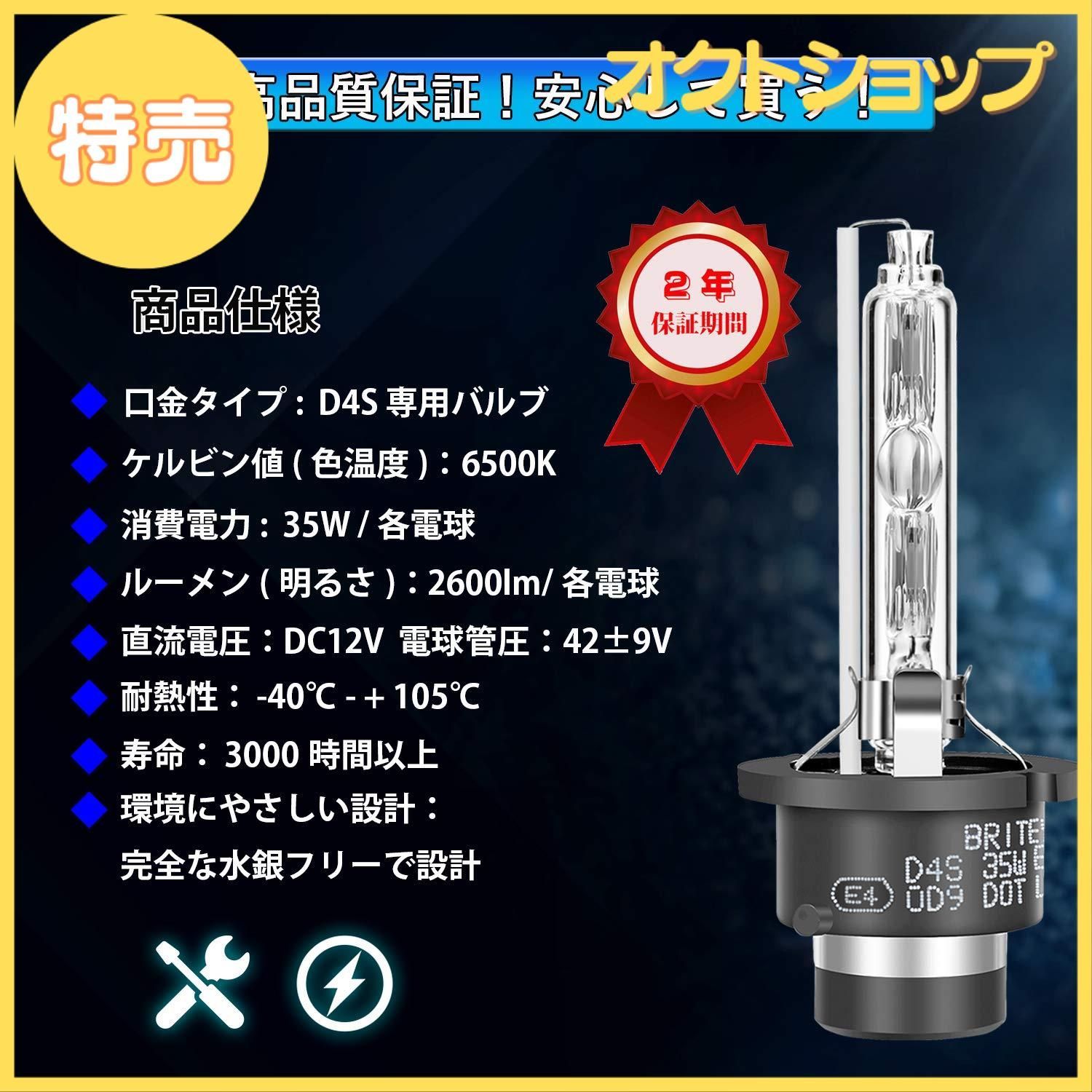 【特売】Briteye D4S HIDバルブ 純正交換用 車用ヘッドライト HID D4S 6500K 車検対応 35W 12V HIDライト【2021アップグレード版】(2個入)