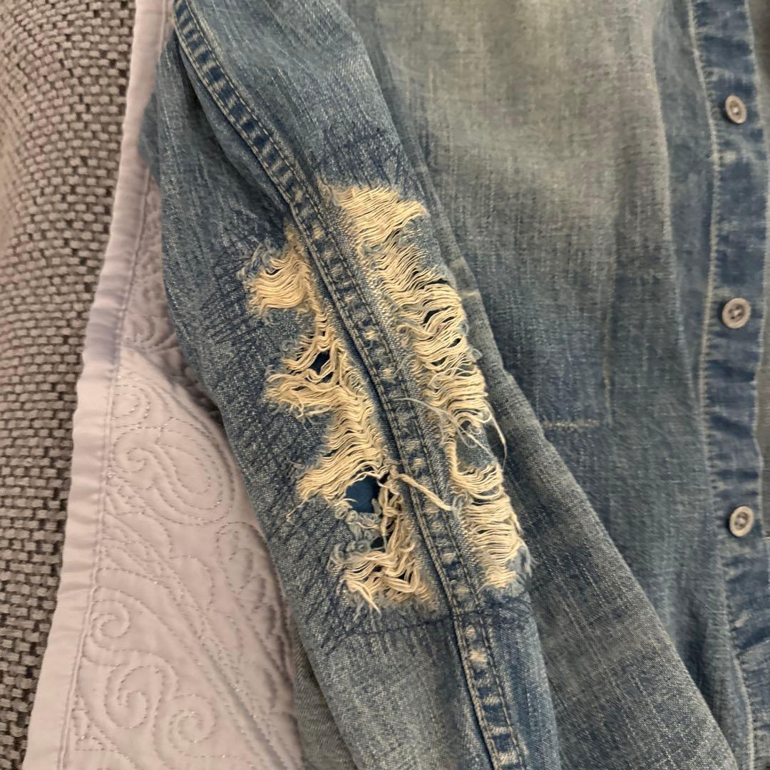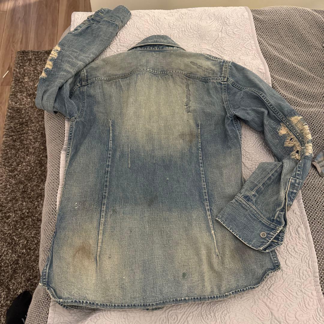 BACKLASH デニムシャツレザーダメージ加工 長袖