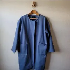HK WORKS ノーカラーコート Mサイズ ブルー