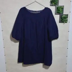 ユニクロ UNIQLO️ 膝丈ワンピース M ドット柄 紺色 ネイビー 半袖
