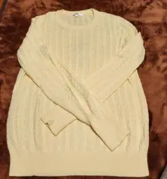 【ユニクロ】ケーブルニット セーター 長袖 カシミヤ混 グレー