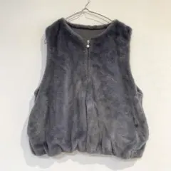 【ラスコリナス】フェイクファーベスト フルジップ パール付き 裏起毛 M-L