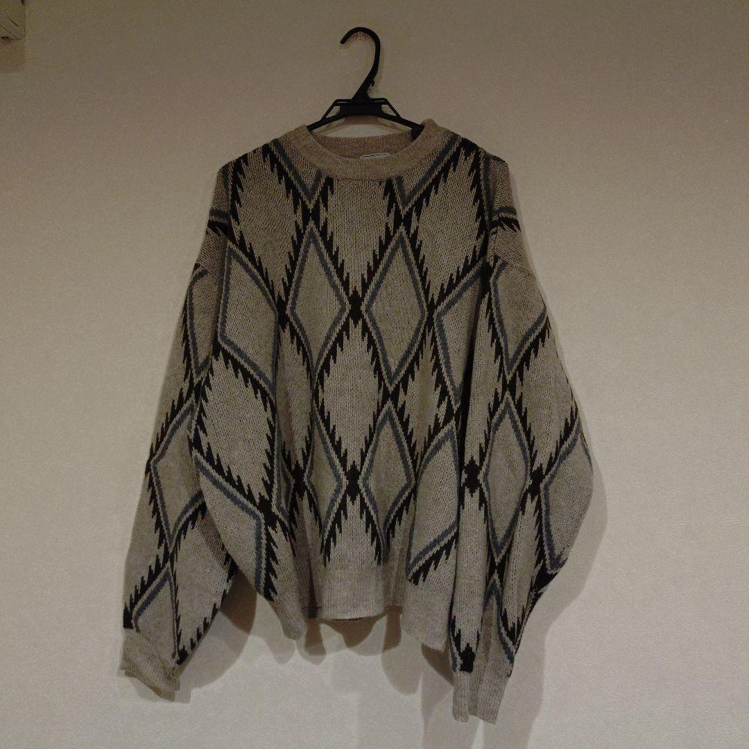 ダイヤモンド柄 グレー系 ニットセーター L