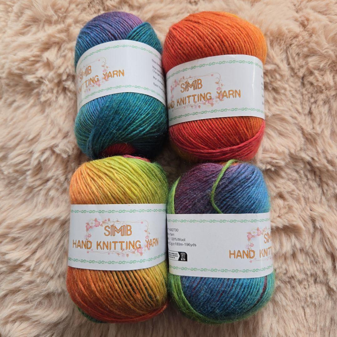 マ*オ様 【新品未使用】ウール100% 毛糸4玉 編み物 虹色 グラデーション