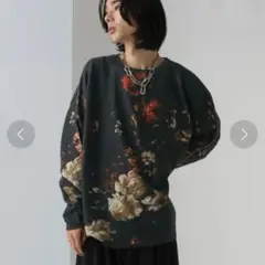 ロング tシャツ メンズ 長袖 ブラック デザイン XS S M L XL 2XL ロンT ティーシャツ 黒 black T shirt long sleeve 006142 花 フラワー 模様