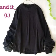 アンドイット ブラック 超ロング長袖 カットソー L リブニット