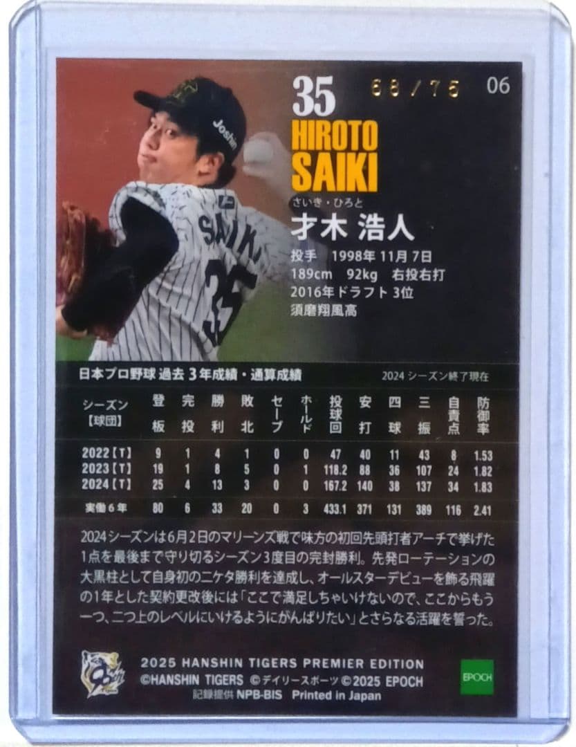 限定75 Epoch 2025 才木浩人 阪神タイガース デコモリサイン