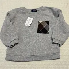 新品未使用 95 タグ付き トレーナー チェック ポケット 灰色 無地 裏起毛