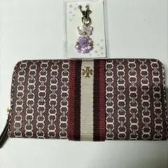 専用様購入しないで下さい美品トリバーチストライプ柄 ワインレッド 長財布