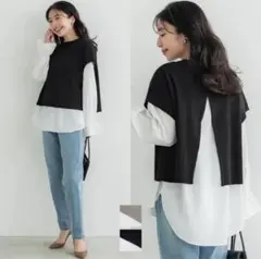【コカ】ニットベスト(M)ジレ レイヤード バックスリット シンプル 無地 黒
