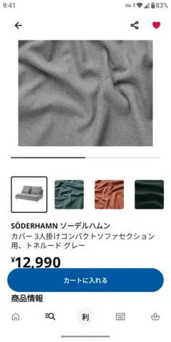 SÖDERHAMN ソファカバー 3人掛けコンパクトソファC用 トネルードグレー