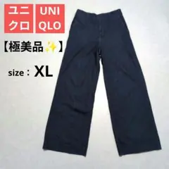 【極美品✨️】ユニクロ ワイドトラウザジーンズ 丈長め XL ネイビー