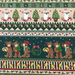 【希少】クリスマス生地1m ベアクリスマス くま グリーン