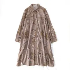 スーパーハッカ コーデュロイ 花柄 シャツワンピース ベージュ