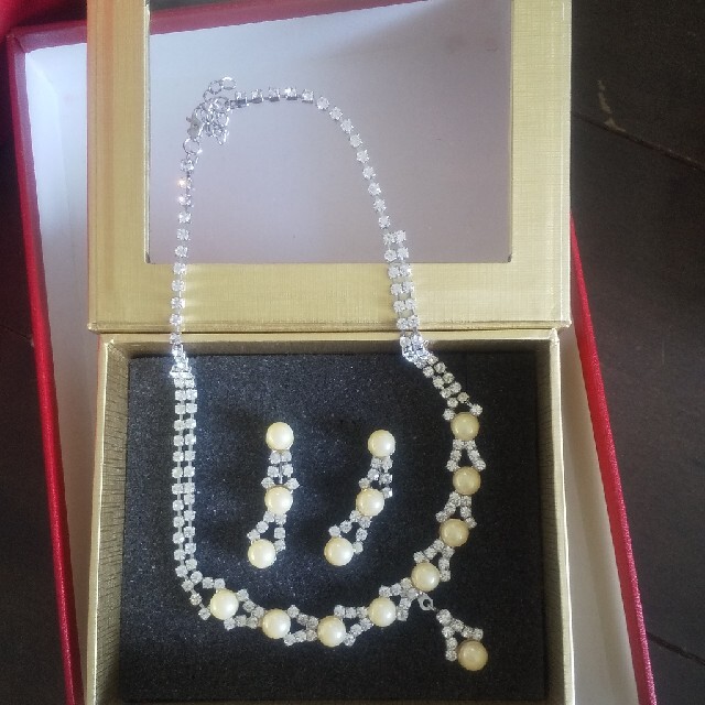 二度使用しました。 中古品であることご了承いただき、ご検討ください。 ネックレス全長約40センチ ピアス長さ約4センチ