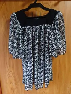【値下げ】COMME CA ISM フリルチュニック 五分袖 F 黒・白