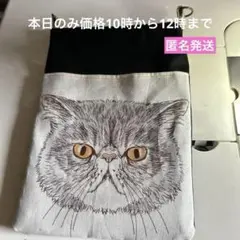 ハンドメイド お散歩ポシェット サコッシュ 紐なし スマホショルダー 猫