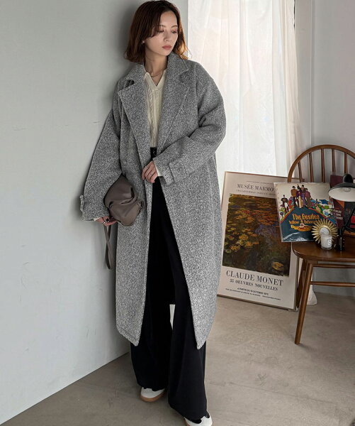 上品な風合いと立体感のあるウールライク素材を使ったロングコートです。