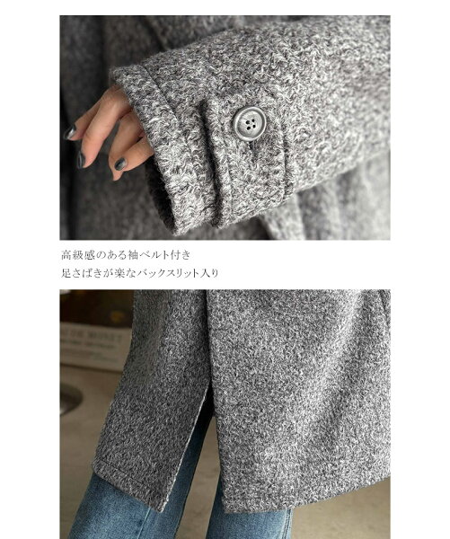秋冬はもちろん、まだ寒い春先のアウターとしても使える、着回し力抜群の一枚です。