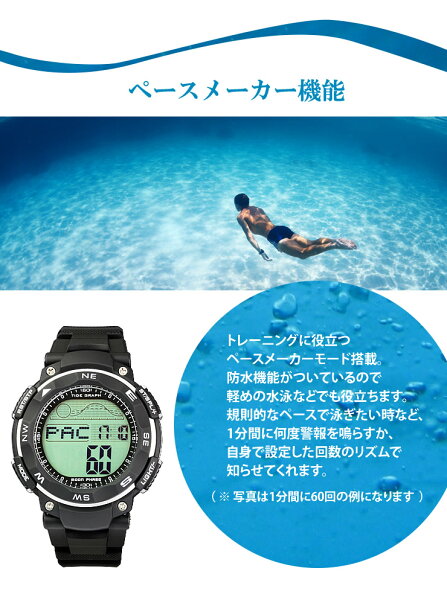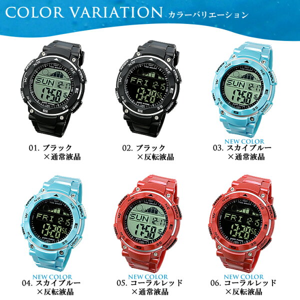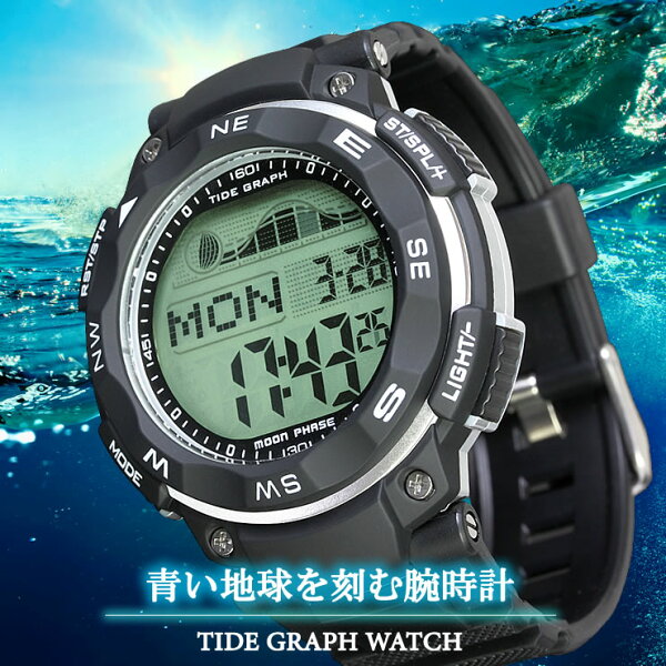 釣りやサーフィンにオススメ!満潮と干潮、月齢がわかる タイドグラフウォッチ 腕時計 メンズ デジタルウォッチ スポーツウォッチ 【 LAD WEATHER ラドウェザー 】 ムーングラフ クロノグラフ 100m防水