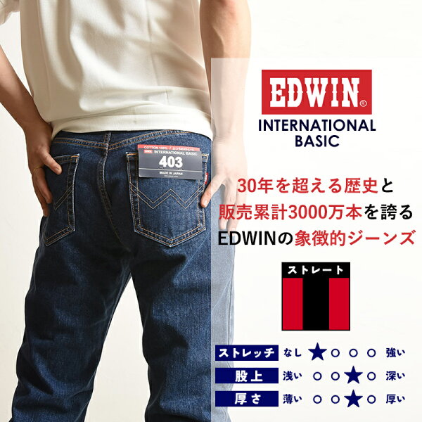 エドウィン EDWIN インターナショナルベーシック 403 ふつうのストレート 股上深め 日本製 デニムパンツ ジーンズ ジーパン ズボン レギュラーストレート メンズ 男性 紳士 E403 MADE IN JAPAN【EDWIN】