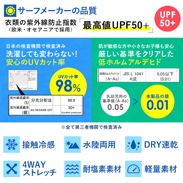 [感謝祭中エントリー10倍]ラッシュガード メンズ トレンカ UPF50+ S~XXL UVカット98%以上 ラッシュトレンカ マリンカ FELLOW 水陸両用 接触冷感 UVカット 紫外線対策 サーフィン マリンスポーツ 18F-RT1