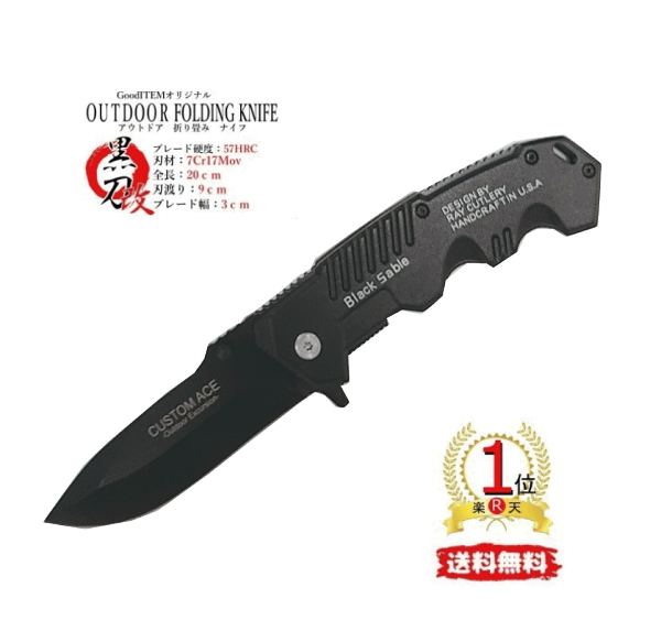 【ランキング1位】【送料無料】 【CUSTOM ACE】黒刀 改良型 フォールディングナイフ 折り畳みナイフ オリジナル アウトドア 釣り サバイバル フィッシング【ポイント消化】