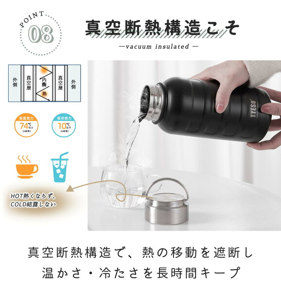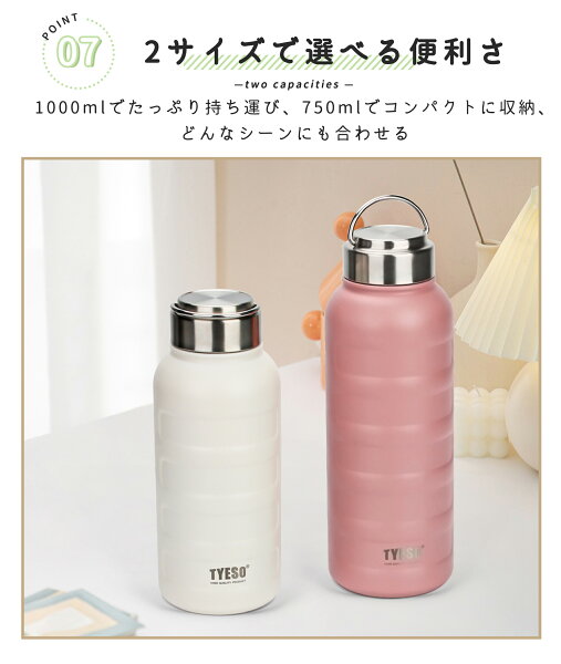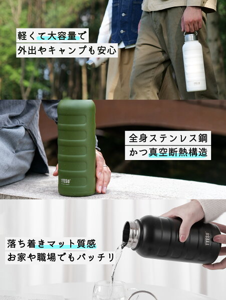 TYESO公式店 水筒 1000ml 保冷 保温 真空 広口 ステンレスボトル ボトル 取っ手 スポーツボトル ドリンクボトル ステンレスボトル 1L 二重断熱構造 持ち運び 真空スリムボトル 直飲み 大容量 5色選択 運動 自転車 旅行 保証付き