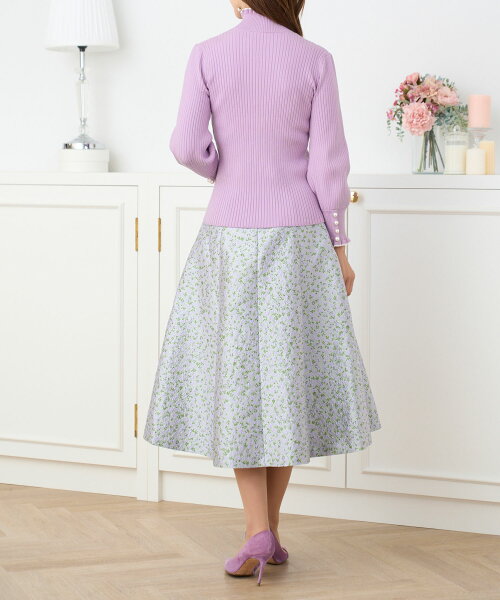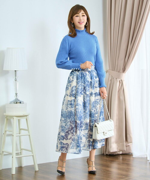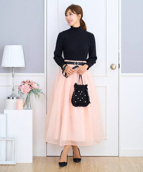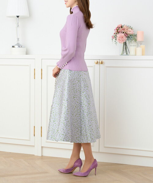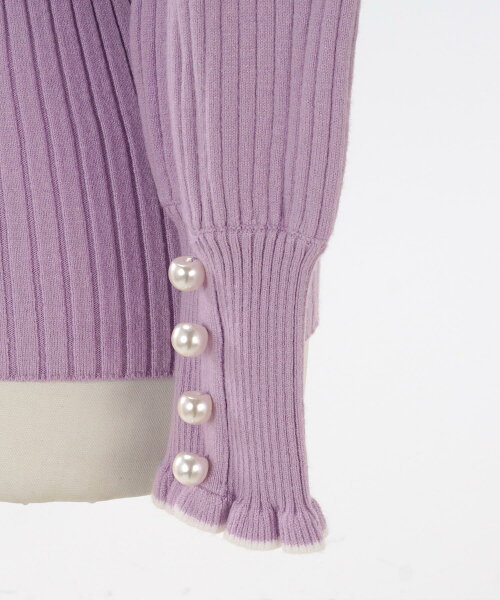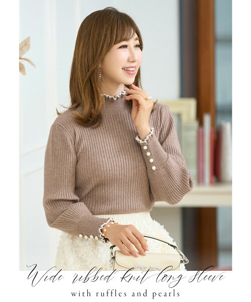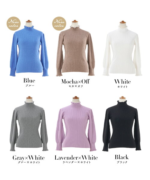 NewYear-SALE トップス ニット リブタートル フリル パール きれいめ オフィス 長袖 秋冬春 かわいい 白黒 配色 レディース ファッション ジョイントスペース フリル&パール付き ワイドリブ ニット 長袖 Prima Scherrer 全6色|psc441-0786【6】