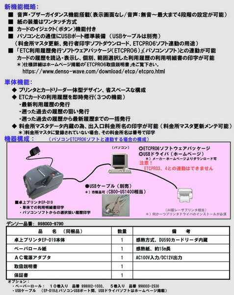 【1/5限定】最大3,000円OFFクーポン配布! EP-D19 DENSO デンソー ETC卓上プリンター ETC利用履歴発行システム 998003-979