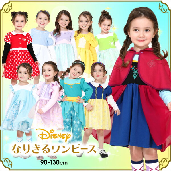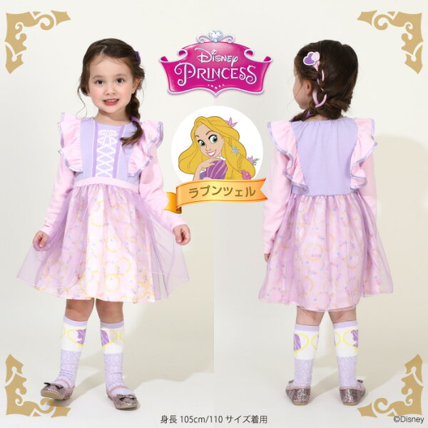 NEW ディズニー プリンセス / なりきる ワンピース 8724K 長袖 ベビードール BABYDOLL 子供服 ベビー キッズ 女の子 DISNEY ディズニープリンセス ドレス コスチューム コスプレ ハロウィン 仮装 ミニー ラプンツェル エルサ アリエル シンデレラ
