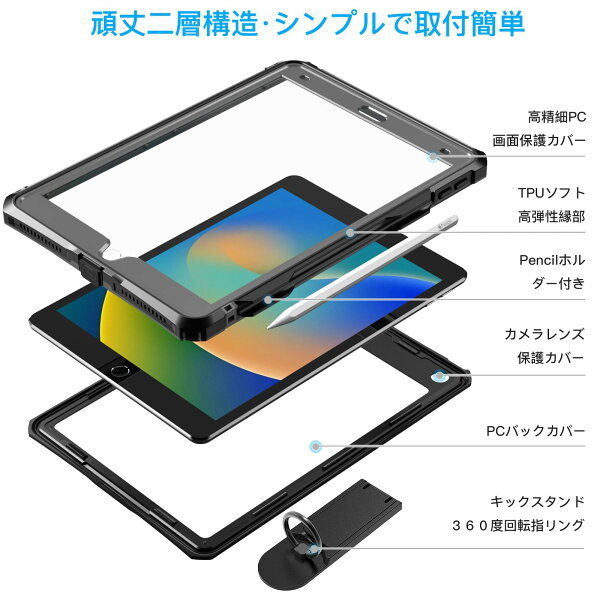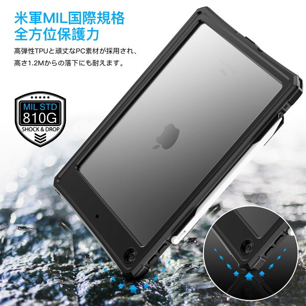 Tmacjump ipad 10.2 防水ケース iPad 第9世代[2021]/第8世代[2020]/第7世代[2019]ケース IP68 完全防水 防塵 耐衝撃 ペン収納 保護フィルム付 TouchID認証対応 キックスタンド ショルダーストラップ お