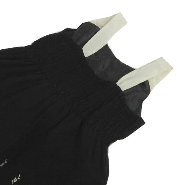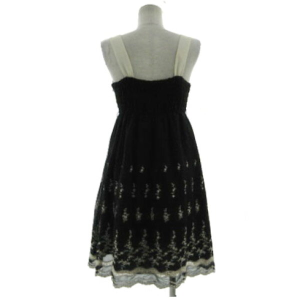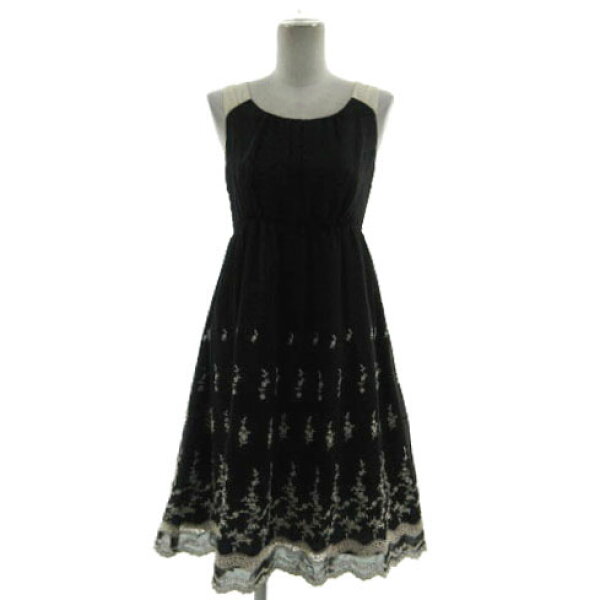【中古】クリアインプレッション CLEAR IMPRESSION ワンピース ノースリーブ バックシャーリング 花柄刺繍 ミディ丈 ウエストゴム 裾スカラップ ブラック 黒 ライトベージュ 3 レディース 【ベクトル 古着】 240812